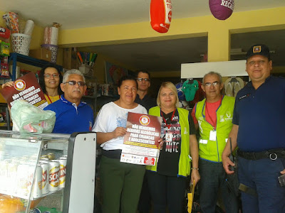 distribuição de panfletos a cerca da Campanha nos estabelecimentos comerciais.