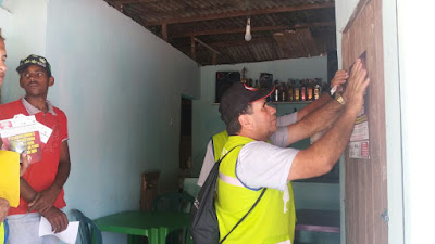de som e com a abordagem direta ao comerciante, com afixação de cartazes e