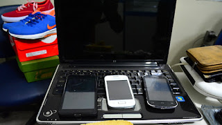 aparelhos de telefone celular; um notebook; vários produtos de procedência duvidosa