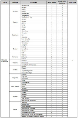 nove vagas, há oportunidades para as regiões de Ouricuri, Palmares, Petrolina,