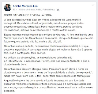 Garanhuns é!”, finalizou Aninha Marques. (Com informações e imagens do perfil Aninha Marque Lira/Facebook.com)