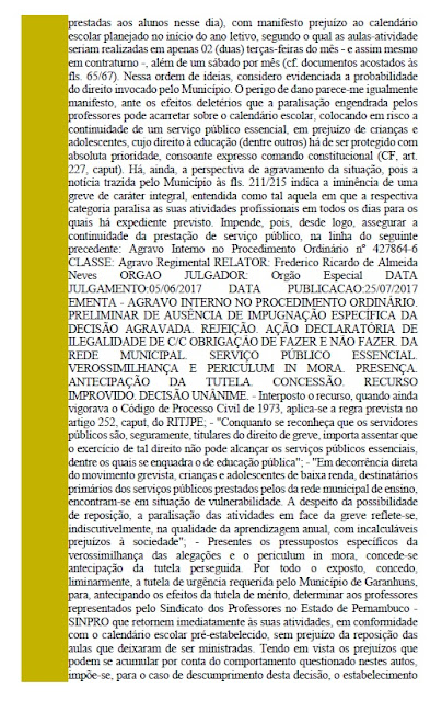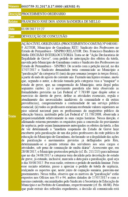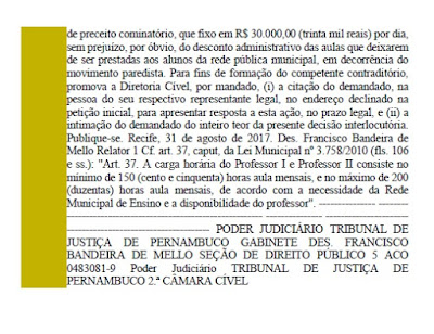 (TJPE), determinou aos professores da Rede Municipal de Ensino de Garanhuns, representados