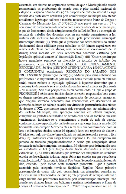 de trabalho dos professores, cuja CARGA HORÁRIA FOI INDEVIDAMENTE REDUZIDA DE