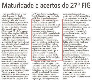 do Commercio de hoje, dia 31, registra que a 27ª edição do Festival de Inverno de