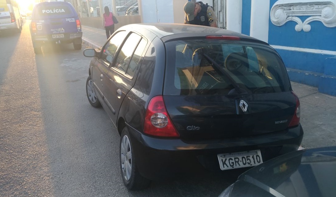 ao veículo Renault Clio, verde, placas KGR 0510. Quando visualizou a viatura