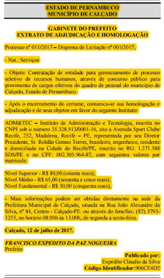 Oficial dos Municípios do Estado de Pernambuco (AMUPE), traz a publicação da homologação