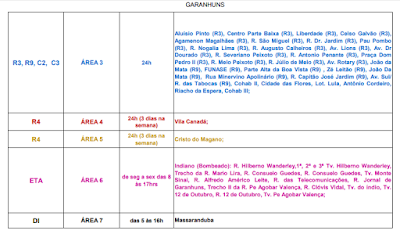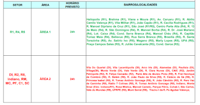 e 3. Já nas áreas 4 e 5, o abastecimento será de 3×3, com três dias com água e outros