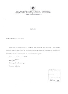 nas contratações e de o Promotor emitir despacho para que os valores considerados em excesso fossem