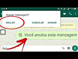 Anular. Já no iPhone e Windows Phone, toque e segure continuamente na mensagem