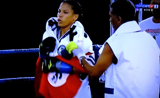 de seis rounds. A partir do 3º assalto, Adriana Araujo assumiu o comando da