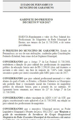 Garanhuns informa que o Decreto n. 028/2017, apenas regulamenta a Lei Federal