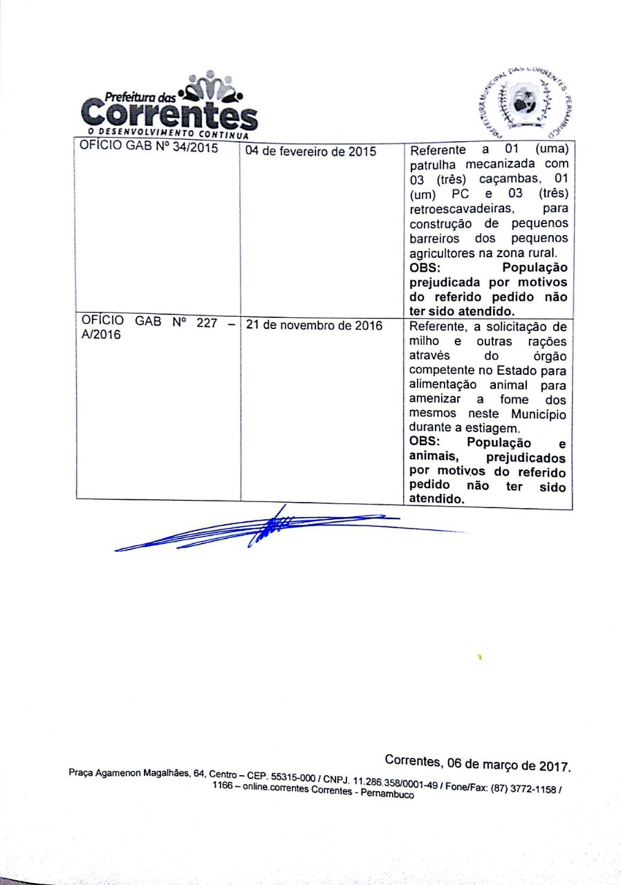 população pode contar com o empenho e apoio do Prefeito. Também pedimos o apoio