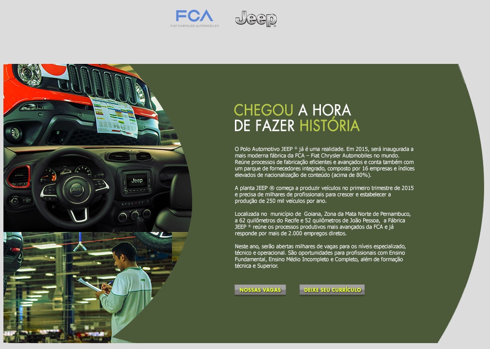 site deve ficar atento que não é preciso enviar um currículo vitae. A Jeep utiliza