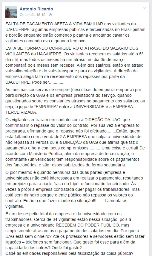 simplesmente atrasam os pagamento dos salários em dia. Por que a UAG está sem