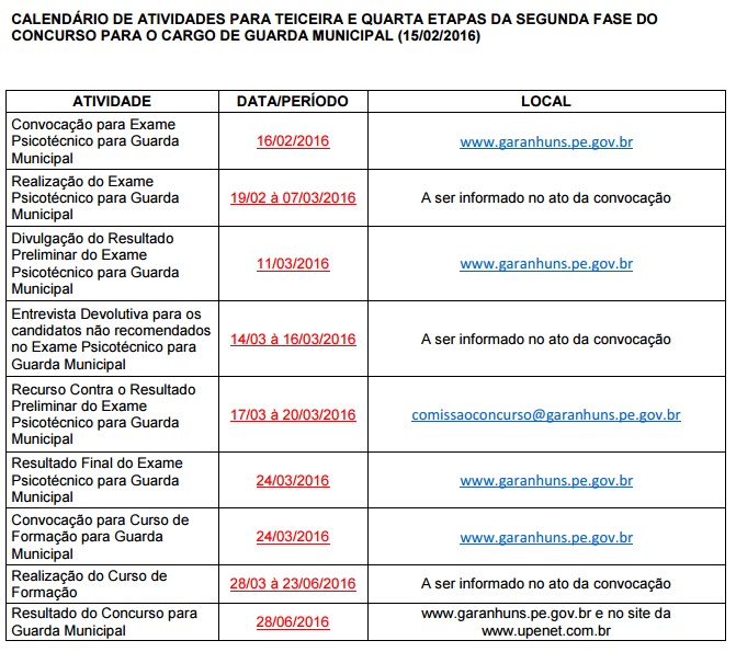 o Concurso da Guarda Municipal, que prevê o resultado do concurso para