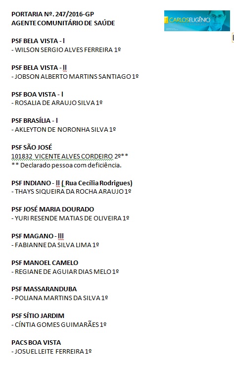 Cargos e Candidatos convocados pela Prefeitura de Garanhuns: