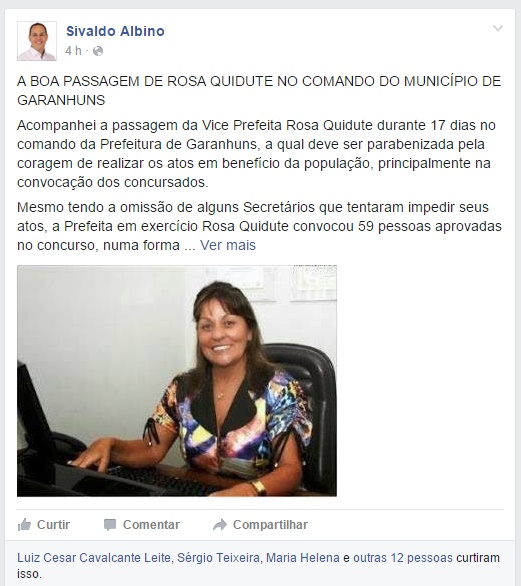 como se fosse seu, e de fato Garanhuns não tem dono!”, registrou Albino, que