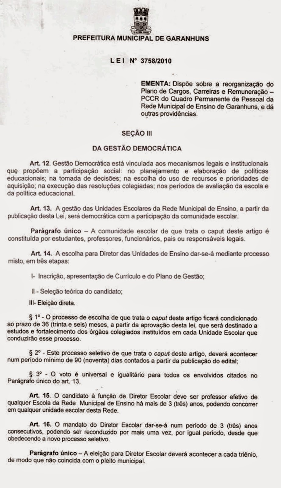 expectativa de que a Prefeitura de Garanhuns possa cumprir o PCC do Magistério e realize