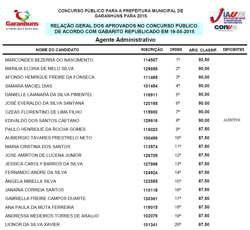 candidatos aprovados no Concurso Público realizado pela Prefeitura de Garanhuns
