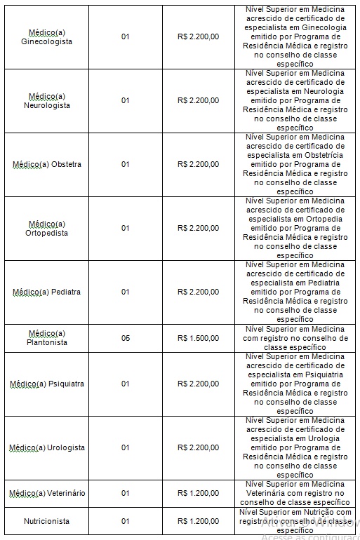 Médio e Superior. Das vagas, 16 são destinadas para Pessoas com Deficiência. A
