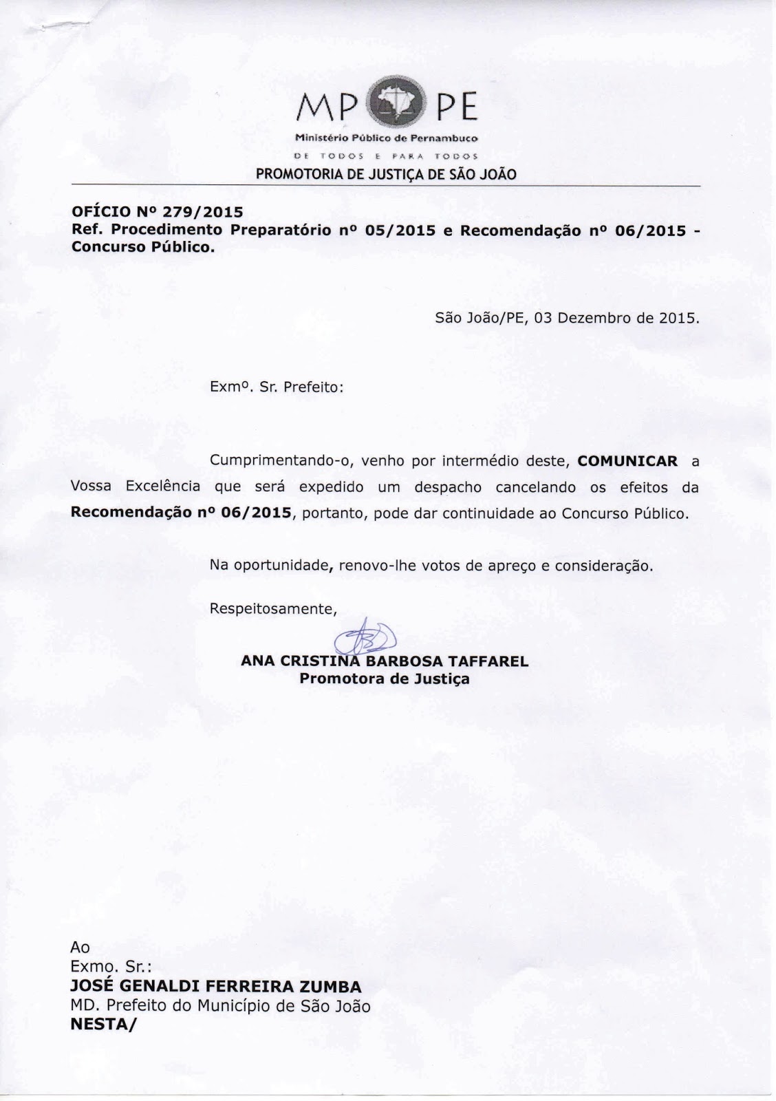 do Concurso Público da Prefeitura de São João. É que o Ministério Público, através