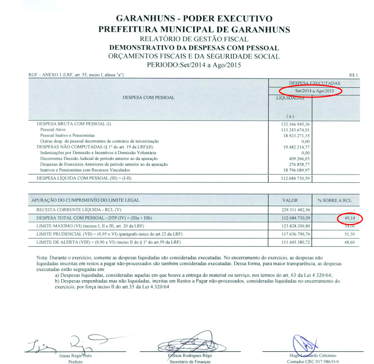 a abril), a Prefeitura de Garanhuns apresentava um índice de 53,44% em seu Relatório