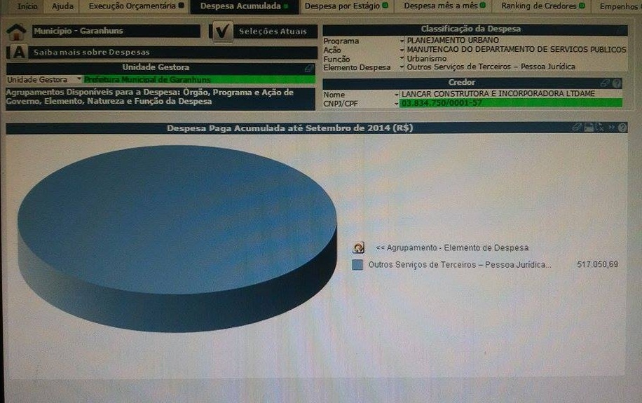 período de 2014 que constam no Site do TCE só foram de R$ 517.050,69 (conforme