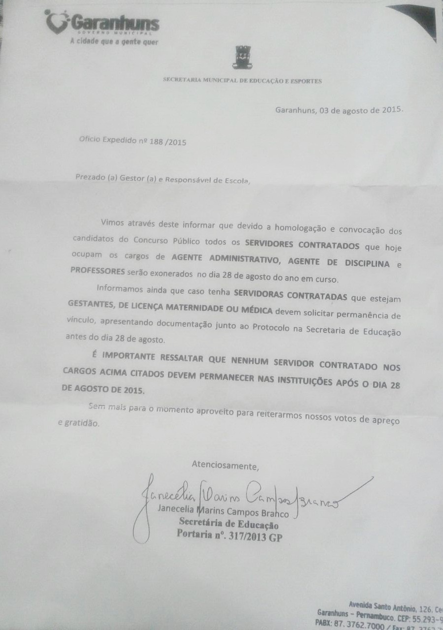 aprovados no Concurso da Prefeitura de Garanhuns e péssima para os servidores