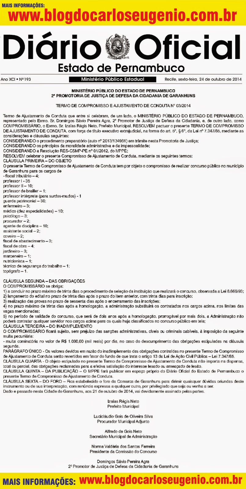 nº 003/2014, firmado junto ao Ministério Público, o Governo Municipal deve