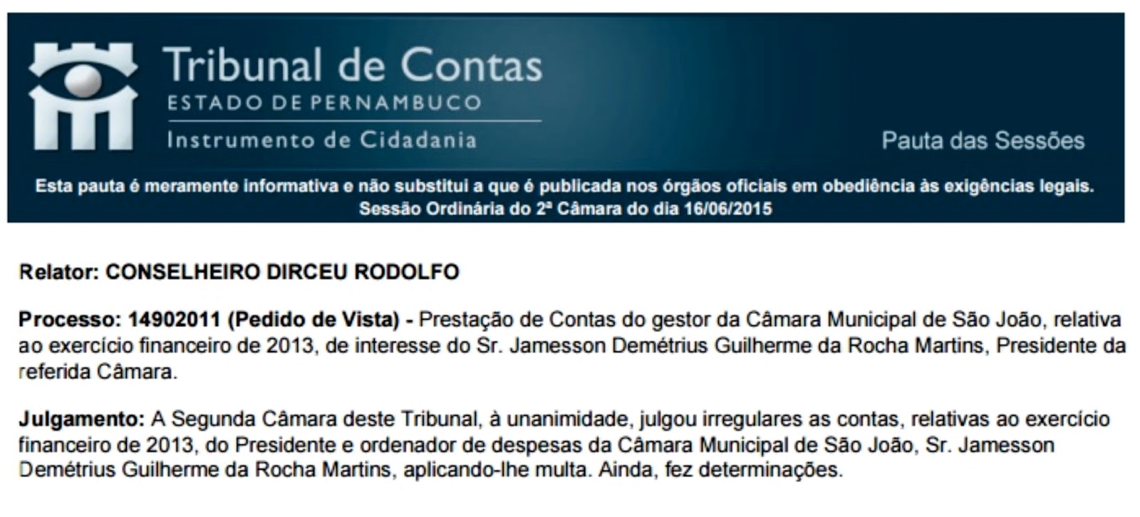 Contas de Pernambuco julgou, na última terça-feira, dia 16, por unanimidade,