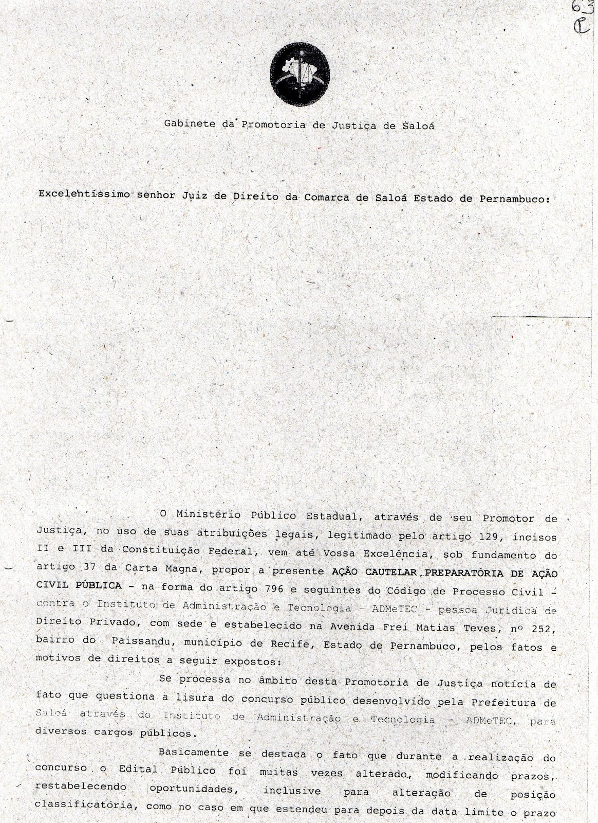 Bezerra, titular da Promotoria de Justiça de Saloá, ingressou com uma Ação