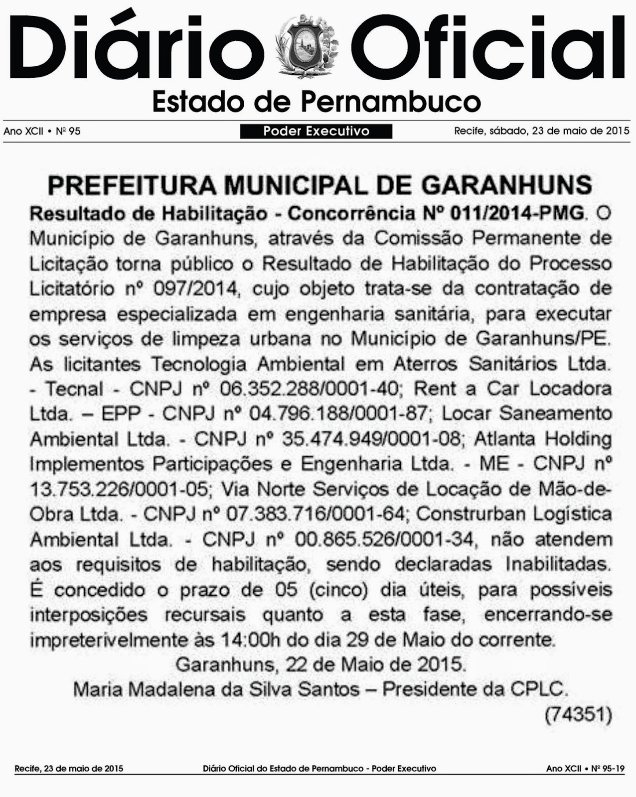 divulgar o resultado do Concurso da Prefeitura de Garanhuns, organizado por