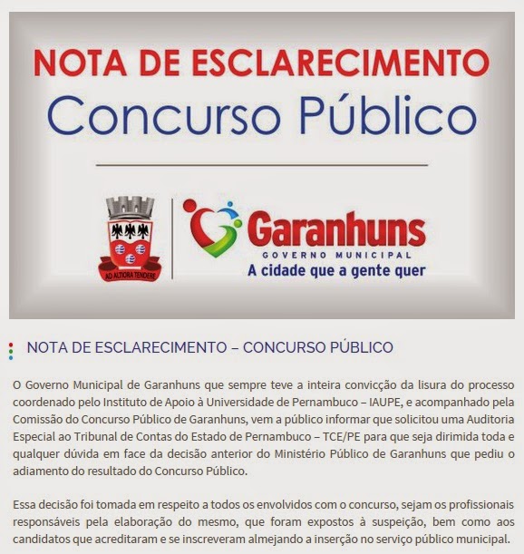 | Imagem: Grupo CONCURSO PREFEITURA DE GARANHUNS 2015/Facebook. |