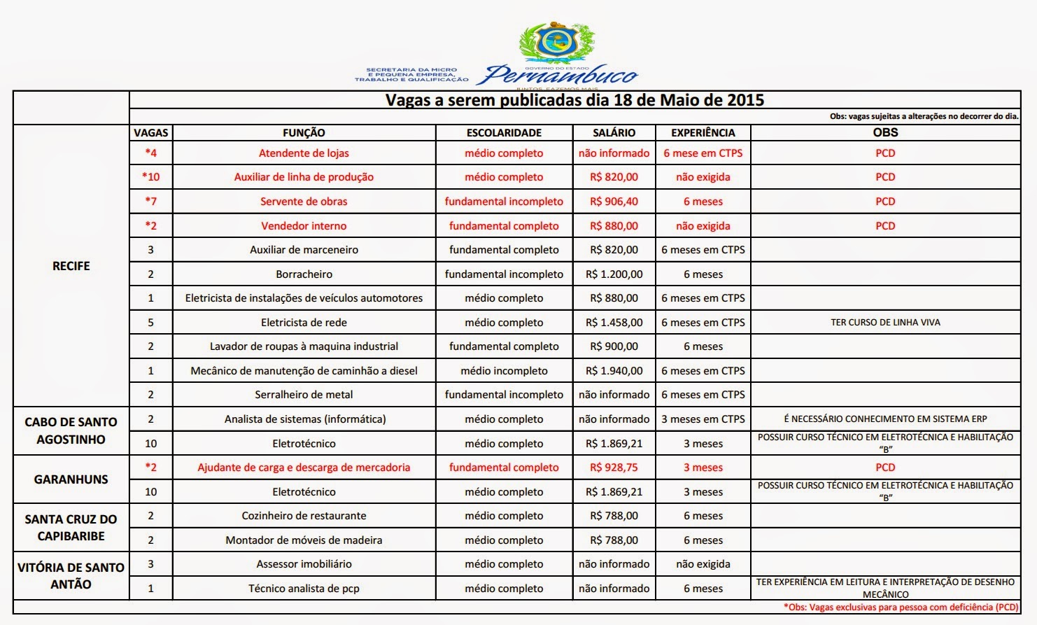 e Pequena Empresa, Trabalho e Qualificação, o oferecimento de 10 vagas de
