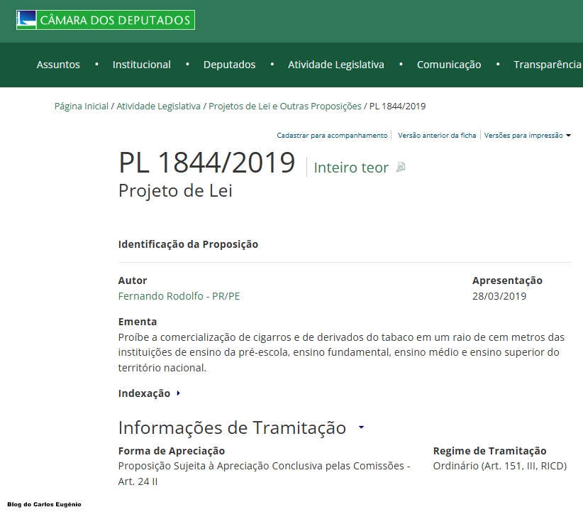 A Comissão de Desenvolvimento Econômico da Câmara dos Deputados aprovou nessa quarta-feira, dia 22, o Projeto de Lei nº 1844/2019, de autoria do deputado Federal Fernando Rodolfo (PL), que proíbe a venda de cigarros e derivados do tabaco num raio de 100 metros de Escolas e Universidades em todo o País.