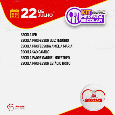 entregando os Kits de Merenda Escolar referentes ao mês de julho deste ano aos estudantes das Escolas Municipais de Garanhuns. O Cronograma