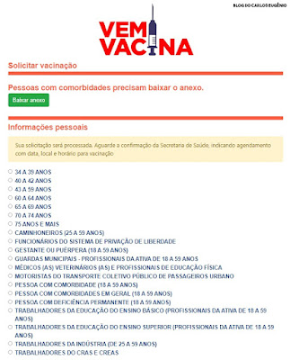 vacinação devem ser consultados junto à Prefeitura. Aqueles que já tomaram a