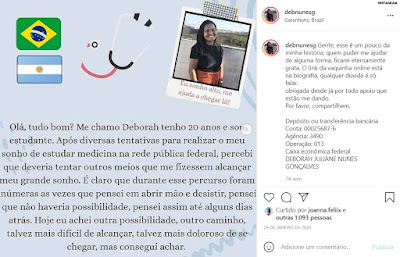13 mil reais numa vaquinha virtual do VOAA, a jovem Deborah Nunes, de 22 anos, vem