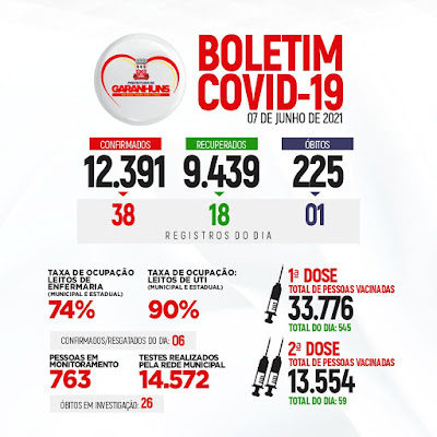 12.391 casos da COVID-19 em Garanhuns. Deste total, 225 pessoas vieram a óbito