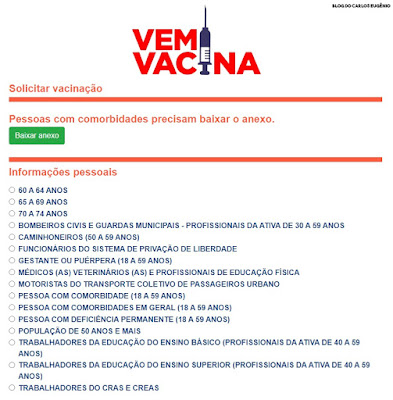 campanha para pessoas com comorbidades a partir de 18 anos; trabalhadores da