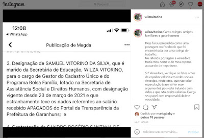 nepotismo e cobrou responsabilidade por parte da vereadora Magda Alves.