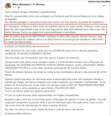 ações levianas serão representadas nos órgãos competentes”, pontuou Wilza Vitorino. (Clique