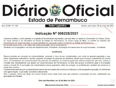 apresentou indicação na Assembleia Legislativa de Pernambuco.