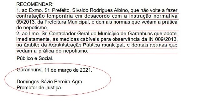 expediu uma recomendação para que o Governo de Garanhuns não voltasse a adotar