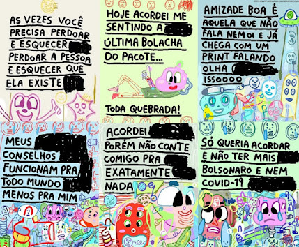 mood lúdico das artes que publica, imitando os desenhos e a escrita das