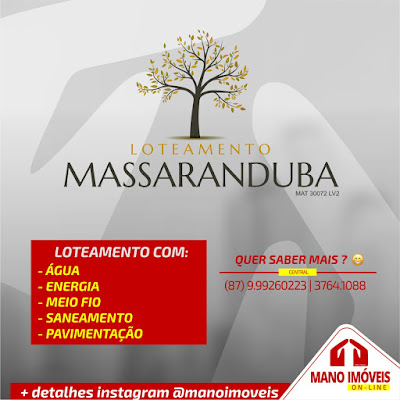 O Loteamento Massaranduba conta com Água, Energia, Meio fio. Além de ser totalmente