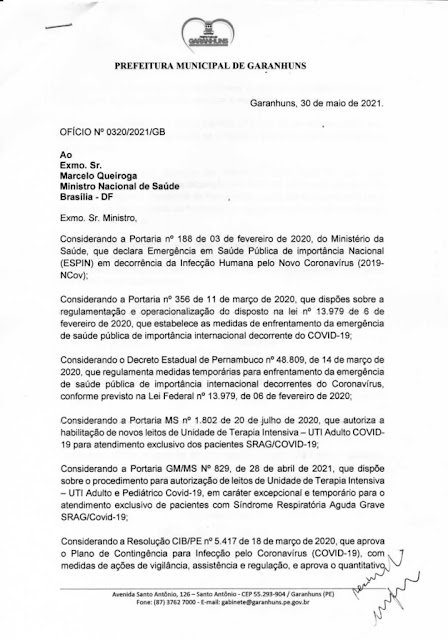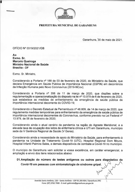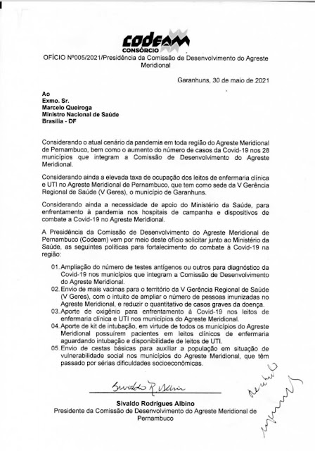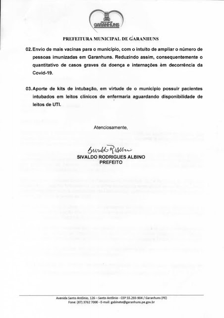 COVID-19, em março passado, e principalmente o envio de mais vacinas para Garanhuns.