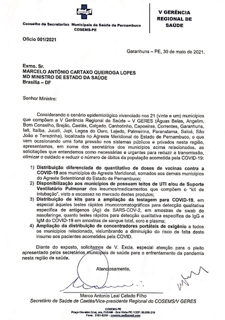 de vacinas para o Agreste Meridional, fato também ratificado em documento da