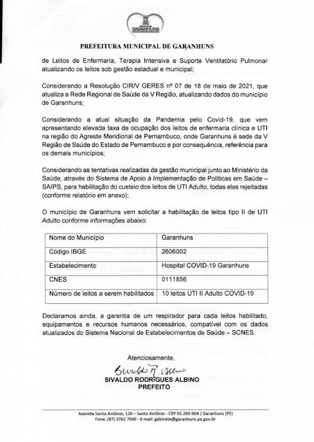 Saúde, André Longo, para viabilizar novas ampliações de leitos aqui em Garanhuns.