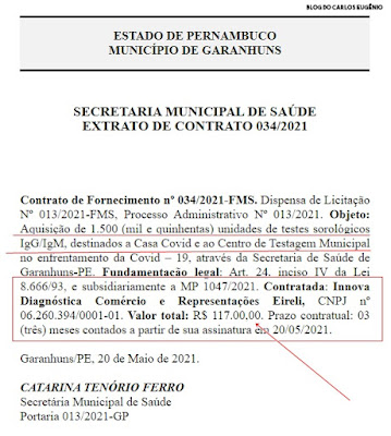 Os Testes, que segundo Extrato de Contrato publicado no Diário Oficial dos